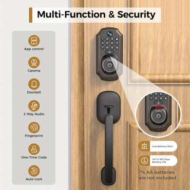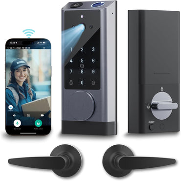 WiFi Smart Door Lock with Camera Doorbell, HD Video Security Lock Digital Fingerprint Electronic Deadbolt, Real-Time Monitoring APP Remote Control, Keyless Entry Touch Screen Code Lock for Front Door/Home/Apartment/Airbnb/Office