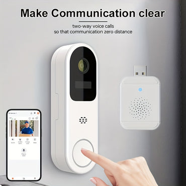 1 set Wireless Video Doorbell with Screen Display, Real-Time Indoor Monitoring, Enhanced Night Vision, Two-Way Audio, Long Battery Life, Local Storage, No App or Network Required - Perfect for Home Security and Elderly Care