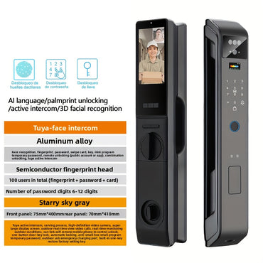 Modern Design AI Smart Door Lock with 3D Face & Fingerprint Recognition, Keyless Entry, App & Keyboard Control, Video Intercom, High-Definition Display, Backup Alloys, Palm Vein/Biometric Unlock, Battery/USB Powered, Fit, Smart Locks for Entry Door, Keyle