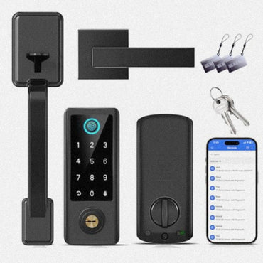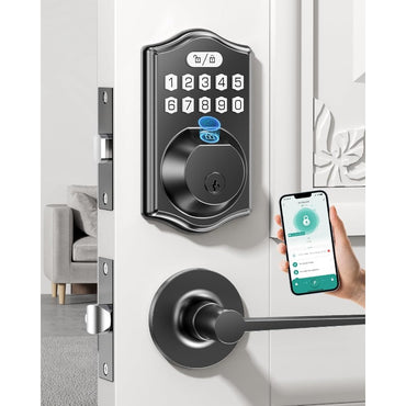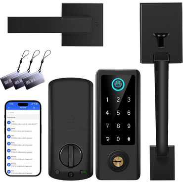 Fingerprint Door Lock with Handle Sets Keyless Entry Door Lock Bluetooth Front Handle Set Smart Deadbolt Electronic Keypad Digital Lock with Handle Black
