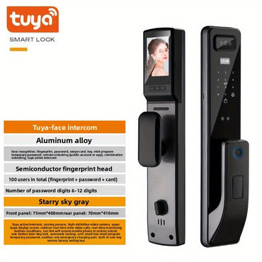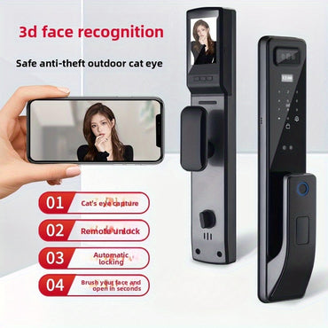 Three-camera monitoring intercom smart lock with facial recognition, fingerprint lock, household anti-theft door lock, automatic smart door lock, Smart Locks for Entry Door, Highsecurity Features, Aluminum Alloy Body