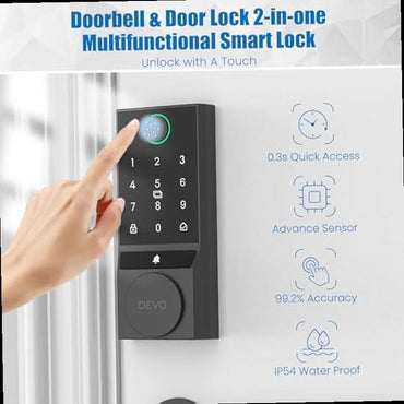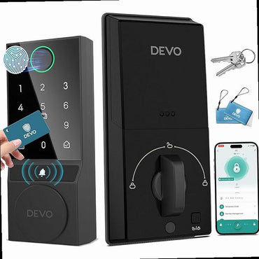 Devo G2 Smart Lock Finger Print Digtal Smart Locks Front Door Keyless Entry Door Lock Bluetooth Smart Deadbolt App Remote Control Electronic Touchscreen Keypad Deadbolt Auto Lock Black