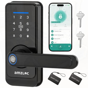 Smart Fingerprint LockLever Door Handle Lock with Keypad Keyl Entry Door Lock for Front Door and Bedrooms Electronic Code Deadbolt Lock Bluetooth App Control IP65 Weatherproof