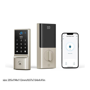 eufy Security Smart Lock C220, Fingerprint Keyless Entry Door Lock, Built-in Wi-Fi, App Remote Control, Front Door Smart Deadbolt, IP53 Waterproof, 8-Months Battery, Nickel (Refurbished)
