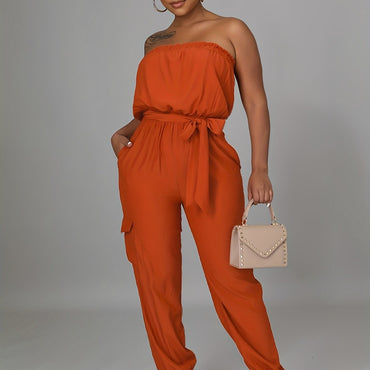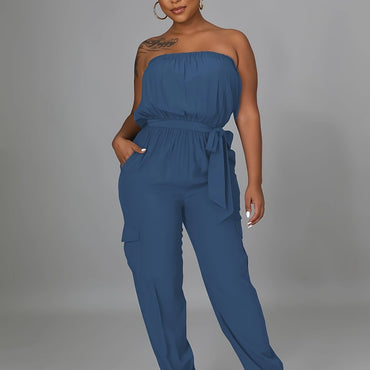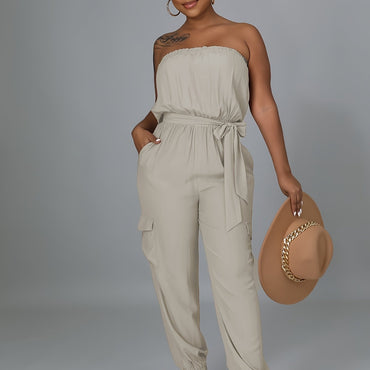 Chic Belted Strapless Jumpsuit - Sleeveless, Pocketed, Casual Chic for Spring & Summer - Women's Comfortable Clothing for Warm Weather