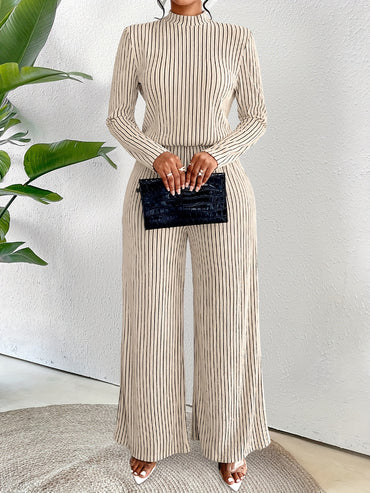 Women's Casual Elegant Long Sleeve Wide Leg Body Suit with Clavicle Collar