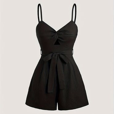 [V-Neck Waist-Defining Jumpsuit] Hollow-Out V-Neck Waist-Defining Jumpsuit