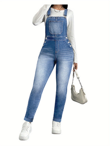 Tight Overalls for Women Classic Adjustable Straps Stretchy Denim Overalls Jeans Pants Skinny Tapered Jeans Overalls