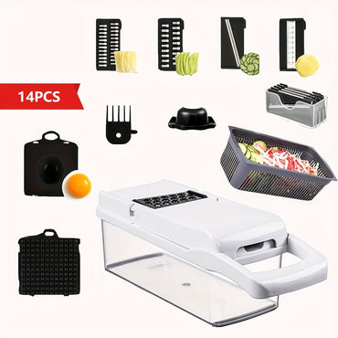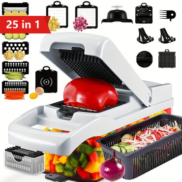 14/15/25/26pcs Set Of Multi-functional Stainless Steel, ABS, And PP Vegetable Cutters, Shredders, And Slicers That Do Not Require Batteries, with Adjustable Blades And A Large Capacity Basket, Making It A Kitchen Tool for Quickly Preparing Meals.