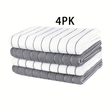 Extra-Thick Super Absorbent Microfiber Kitchen Towels - Rapidly Suck Up Liquids with Stylish Gray & White Stripes, Extra-Wide for Effortless Cleaning and Drying