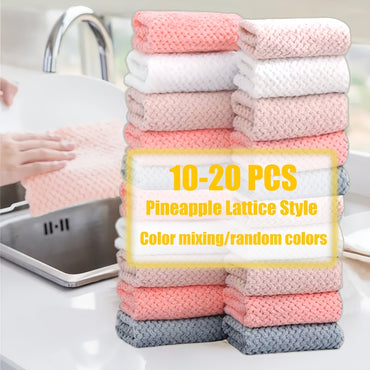 [20pcs Super Absorbent Pineapple Towels] 20pcs Pineapple Pattern Kitchen Towels - Super Absorbent & Durable, Multi-Color Cleaning Cloths, Easy Stain Removal, Polyester, Square Shape for Kitchen & Bathroom Use, Pineapple Towel