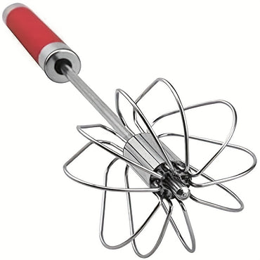 1pc Stainless Steel Deluxe Rotary Whisk - Semi-Automatic, Portable, Non-Slip, Easy Cleaning, and Space-Saving Design for Effortless Egg Beating and Perfect Meringues, Creamy Frostings, and Fluffy Omelets