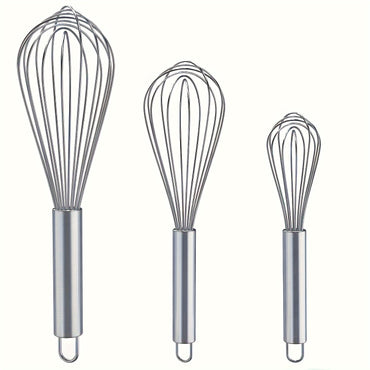 Stainless Steel Whisk Set of 3 - Manual Kitchen Hand Blenders for Whisking, Beating, Stirring - Enhanced Durability Balloon Whisk Kit, Food Grade, Easy to Clean, Ergonomic Design - No Battery Required