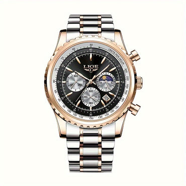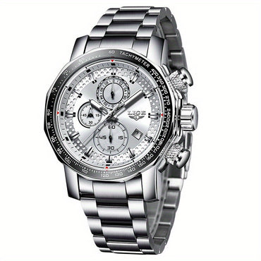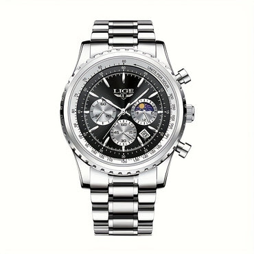 LIGE Multifunctional Quartz Watch With Stainless Steel Strap Date Function Quartz Movement Stainless Steel Case Sports Style Watch