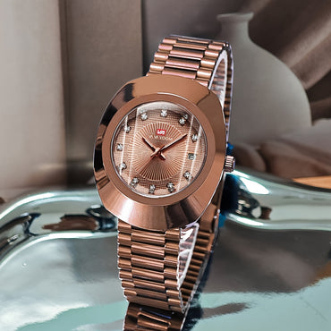 GLENAW Automatic Watches for Men, Rhinestone Scale Men's Waterproof Watch Stainless Steel Strap Golden Pattern 12 Hours Week Mechanical Watch