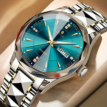 Stainless Steel Men's Luxury Business Quartz Watch with Luminous and Calendar Feature - POEDAGAR