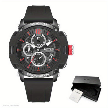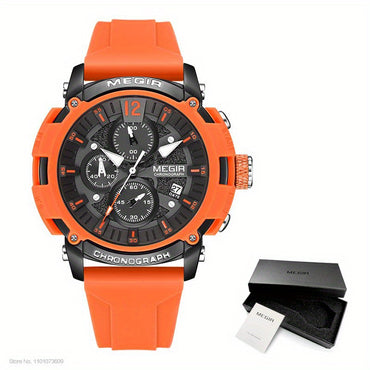 1pc MEGIR Men's Multifunctional Sports Watch - 3ATM, Night Light Feature, Orange & Black Silicone Quartz with Chronograph & Date Display - Ideal for King's Day