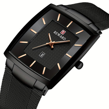 [Blue Dial Quartz Watch] Sleek Blue Dial Men's Quartz Watch - Stainless Steel Mesh Band, Date Display, Battery Operated
