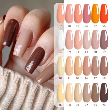 VOKY 24pcs/SET Gel Nail Polish Nude Pink/Chocolate/Yellow, Maillard Color Nail Polish, Nail Polish for Beginners, Suitable for Women'S Holiday Gifts