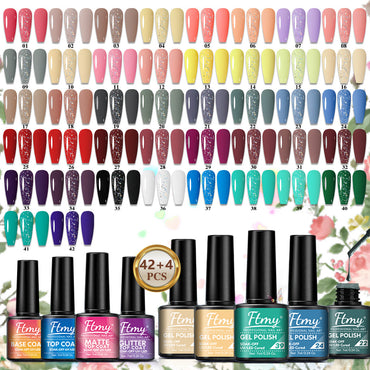 FTMY 46Pcs party favor Long Lasting Gel Nail Polish, 42Pcs Colorful Gel Nail Polish With Base Coat Gel Glitter Top Matte Top Coat Nail Gel Polish For Nail Art Design Wedding Or Party Use
