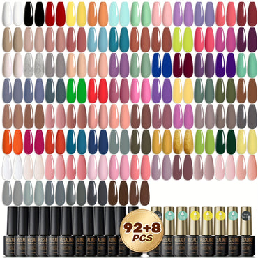 ROSALIND 100PCS Gel Nail Polish Set, 92 Colors Nude Pink Green Blue Colors Gel Polish With Glossy & Matte Top Base Coat Soak Off DIY Gift For Women