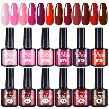 RISYAL 12-color red nail gel set: bright pink, red and rose red, 0.25oz large capacity, light Relax gel for DIY nail design, long-lasting shine, suitable for home salon manicure, bringing a rich and romantic red nail experience! Add a fashionable and roma
