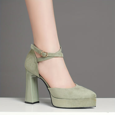 Women'S Comfortable Block Heel Pumps - Mint Green Pointed Toe Summer Dress Shoes with Ankle Strap, Ultra-High Heel, Block Heel, Synthetic Cover & Rubber Sole for Casual & Formal Occasions, High Heel Shoes, Formal Footwear, Elegant Shoe Design, Durable Tra