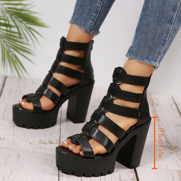 2025paragraph Women's Chunky Platform High Heel Roman Shoes - Black Synthetic Cover Strappy Ankle Strap Summer Shoes with Cushioned PVC Insole & Thick Sole for Casual & Formal Outfits, Modern Footwear, Durable Footwear