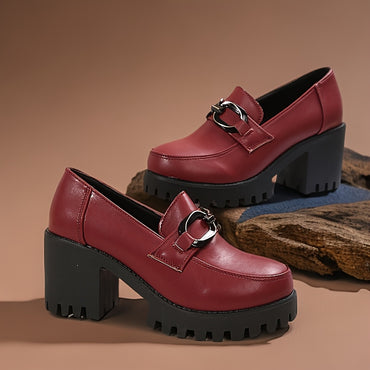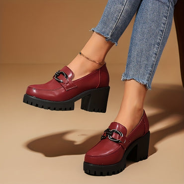 Women'S Elegant Chunky Platform High Heels - Slip-On Ultra-High Heels, Metallic-like Shine, All-Season Formal & Casual Shoes, Synthetic Cover Upper & Cushioned Insole for Parties, Office, Everyday - Easy-Clean Women'S Dress Shoes, High Heel Shoes, Party F