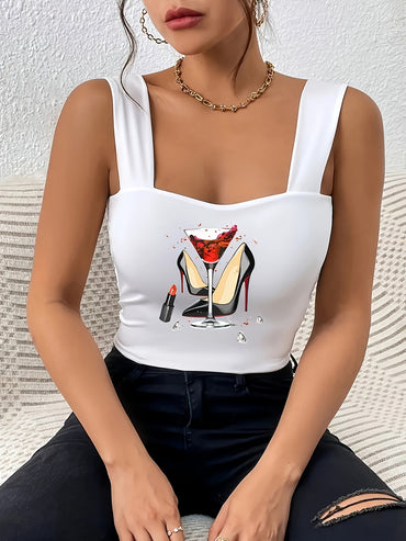 Ladies' Printed Slimming Fashion Versatile Tank Top