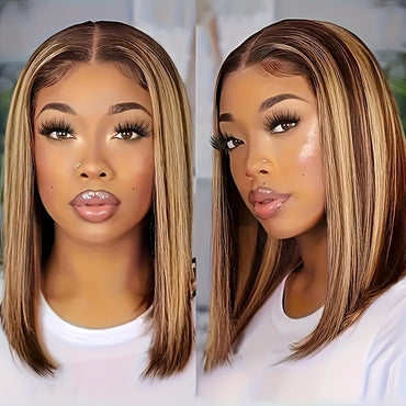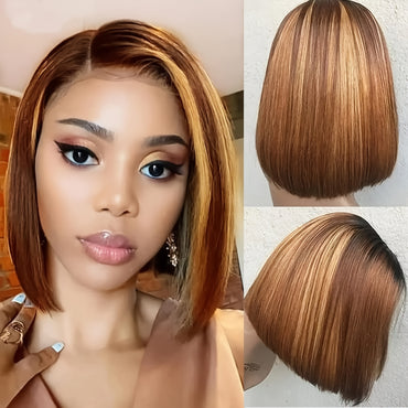 New Year Special Clearance Highlight Bob Wig Human Hair Straight HD Lace Short Bob Wig 200% Honey Blonde 4x4x1 Honey Blond Lace Closure Wig For Women Ombre 4/27 Straight Lace Front Wig Pre Plucked T Part For Girls Colored Brazilian Human Hair Wigs