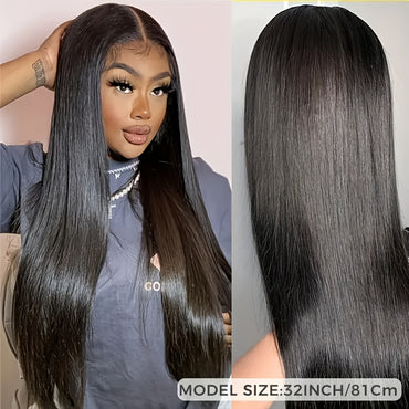 Women's 200% Density Straight Human Hair Wig - 13x4 HD Lace Front, Pre-Plucked Edges, Natural Look, 1pc | Elegant Hairpiece