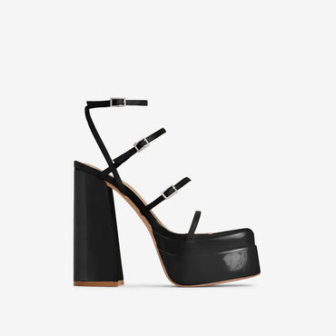 Summer Black White Green Blue 16cm Chunky Heel High Heel Rhinestone Buckle Cross Buckle Sandals Women Waterproof Platform Heels