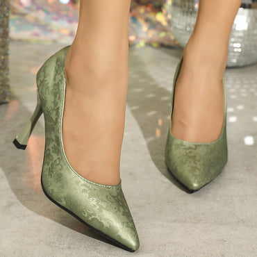 Black Green 11cm Stiletto Heel Pointed Satin Surface High Heel Sandals Peep Toe Summer Rivet Heels