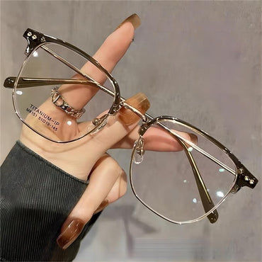 A Pair of Women's Fashion Retro Half Frame Anti-Blue Glasses Flat Mirrors - Vintage Style Unique Decorative Holiday Gifts