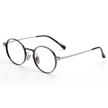 Ultra-Lightweight Titanium Round Frame Glasses - Vintage Minimalist Black Matte Finish, Blue Light Blocking Clear Lenses, Full-Rim Comfort Fit with Sturdy Metal Hinges for Men & Women