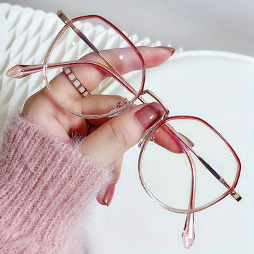 1 Pair Elegant Cat Eye Glasses - Full Rim Frame Non-Prescription Eyewear, Metallic Finish in Rose Golden/Pink/, Lightweight PC Lens, Minimalist Face-Shaping Glasses for Women & Men, Everyday & Formal Events