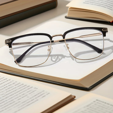 Classic elegant square frame Golden glasses, metal frame glasses, ideal for men and Women's daily school decoration, gifts