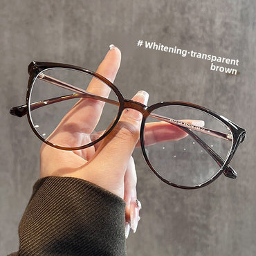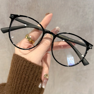 New Fashionable Women'S Oval Frame, Light Luxury Design Minimalist Versatile Student Campus Fashion Glasses, Professional Women'S Elegant Temperament Expression Props