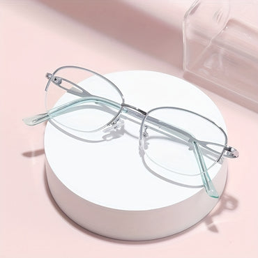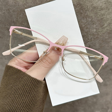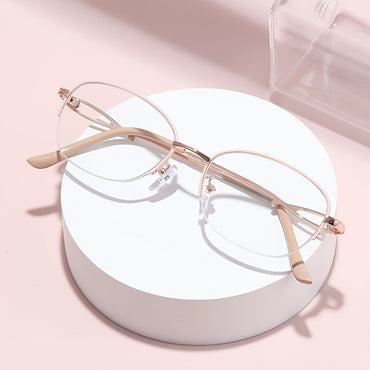 2D Flat - Y2K Style Half-Frame Glasses for Women - Pink Metal Frame, Clear Lenses, Lightweight & Stylish for Work, Campus, or Daily Use, Perfect Gift for Friends and Family, Y2K Fashion Glasses, Campus Eyewear, Minimalist Eyewear, Durable Eyewear