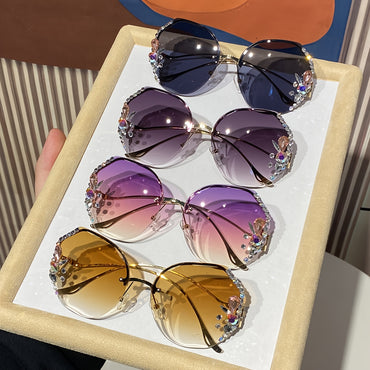 Fashionable Retro High-End Glasses for Women, New Model with No Frame And Cut Edge.