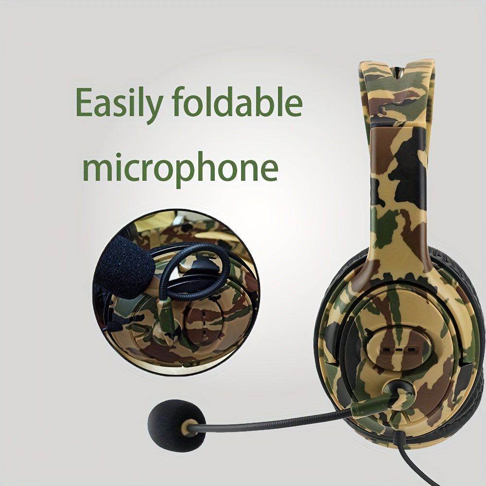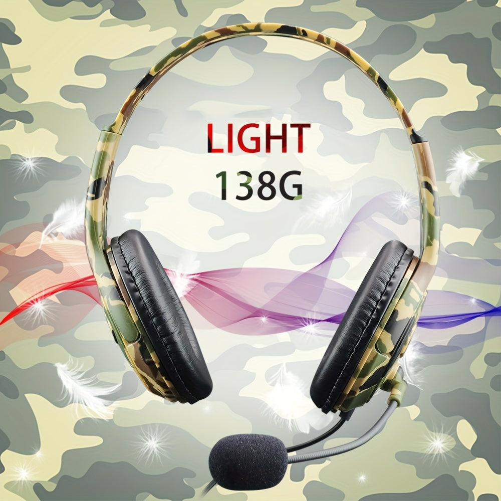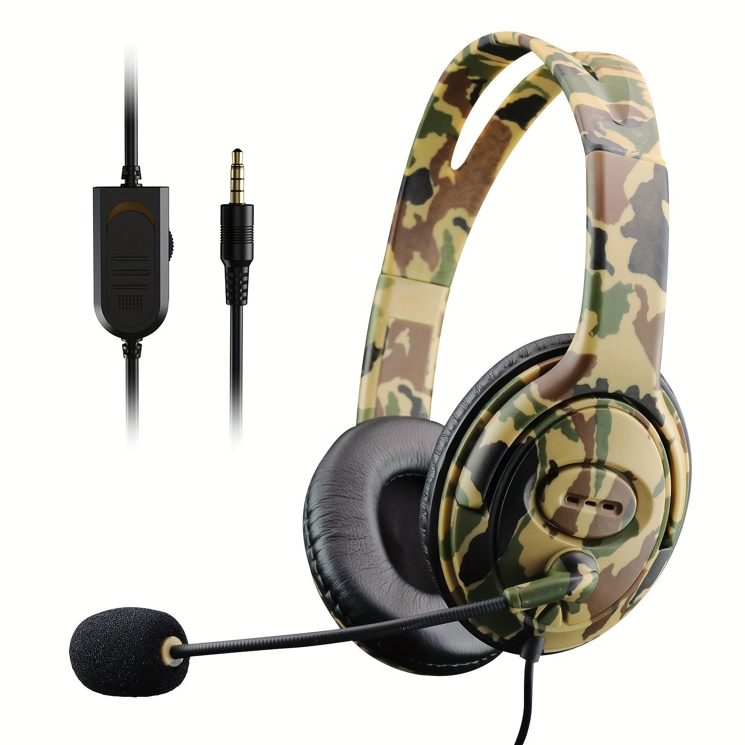 1 casque de jeu filaire camo léger avec microphone, écouteurs circum-auriculaires isolants, contrôle par bouton, prise 3,5 mm, compatible avec PS5, PS4, PC, Mac, Switch, Xbox - Construction en plastique, pas de batterie requise