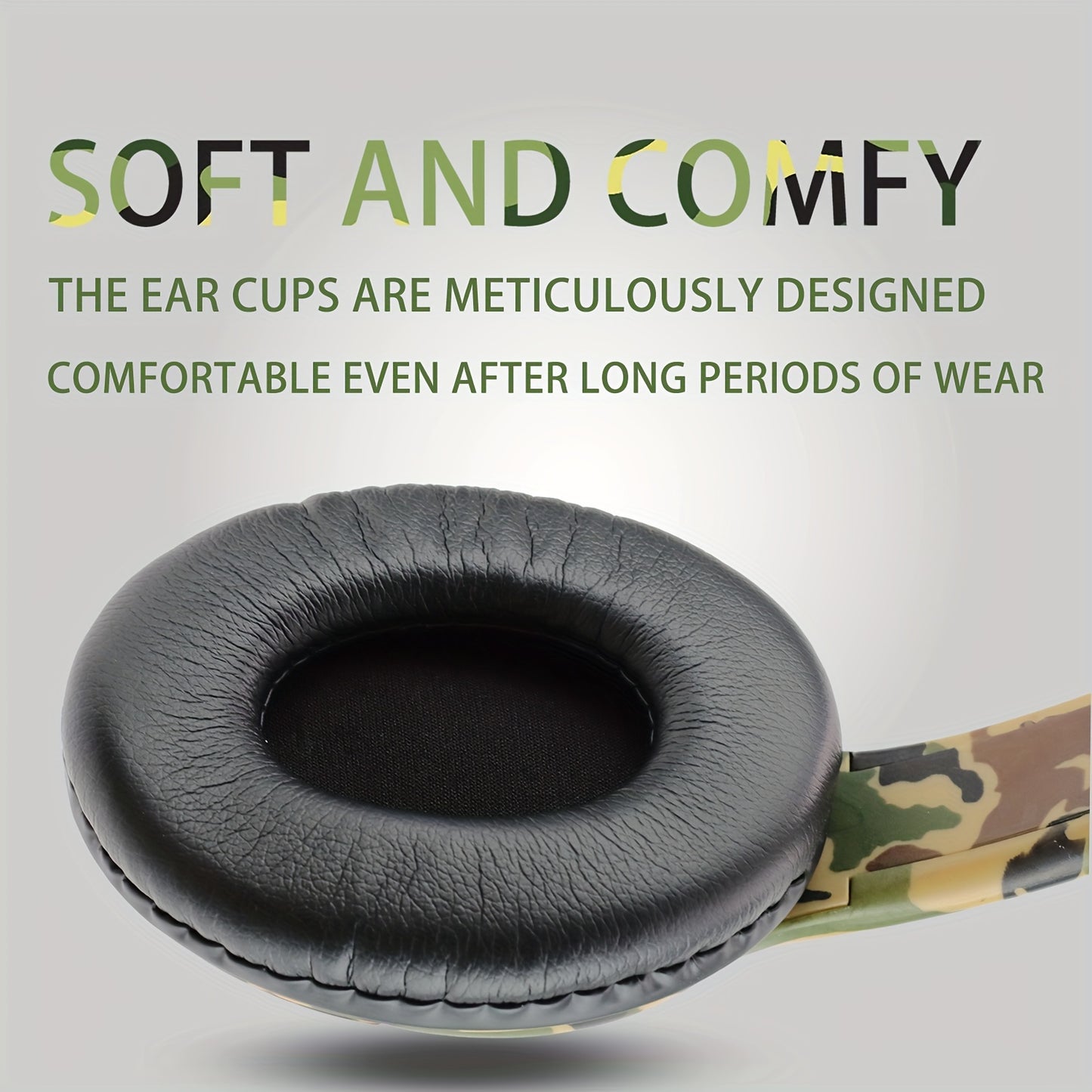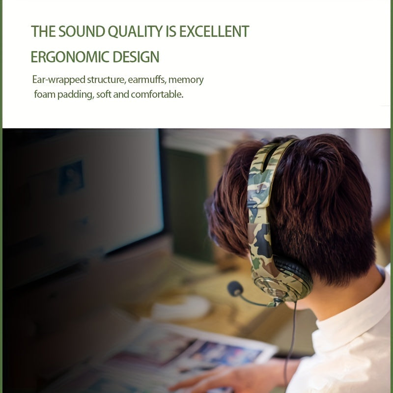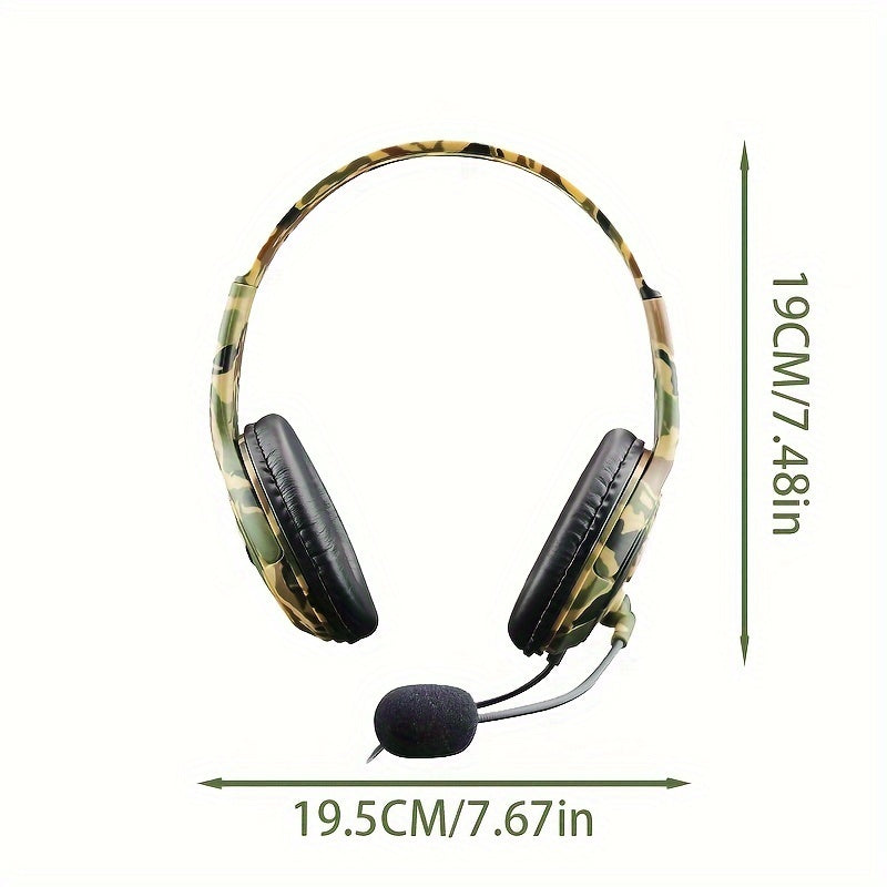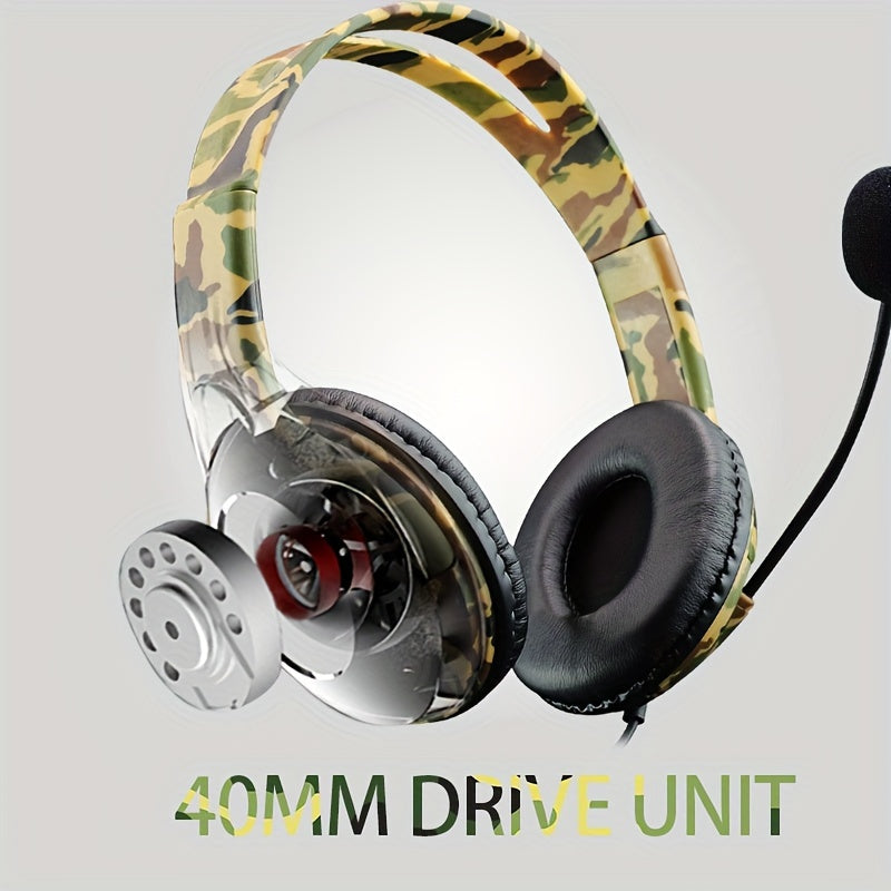 1 casque de jeu filaire camo léger avec microphone, écouteurs circum-auriculaires isolants, contrôle par bouton, prise 3,5 mm, compatible avec PS5, PS4, PC, Mac, Switch, Xbox - Construction en plastique, pas de batterie requise