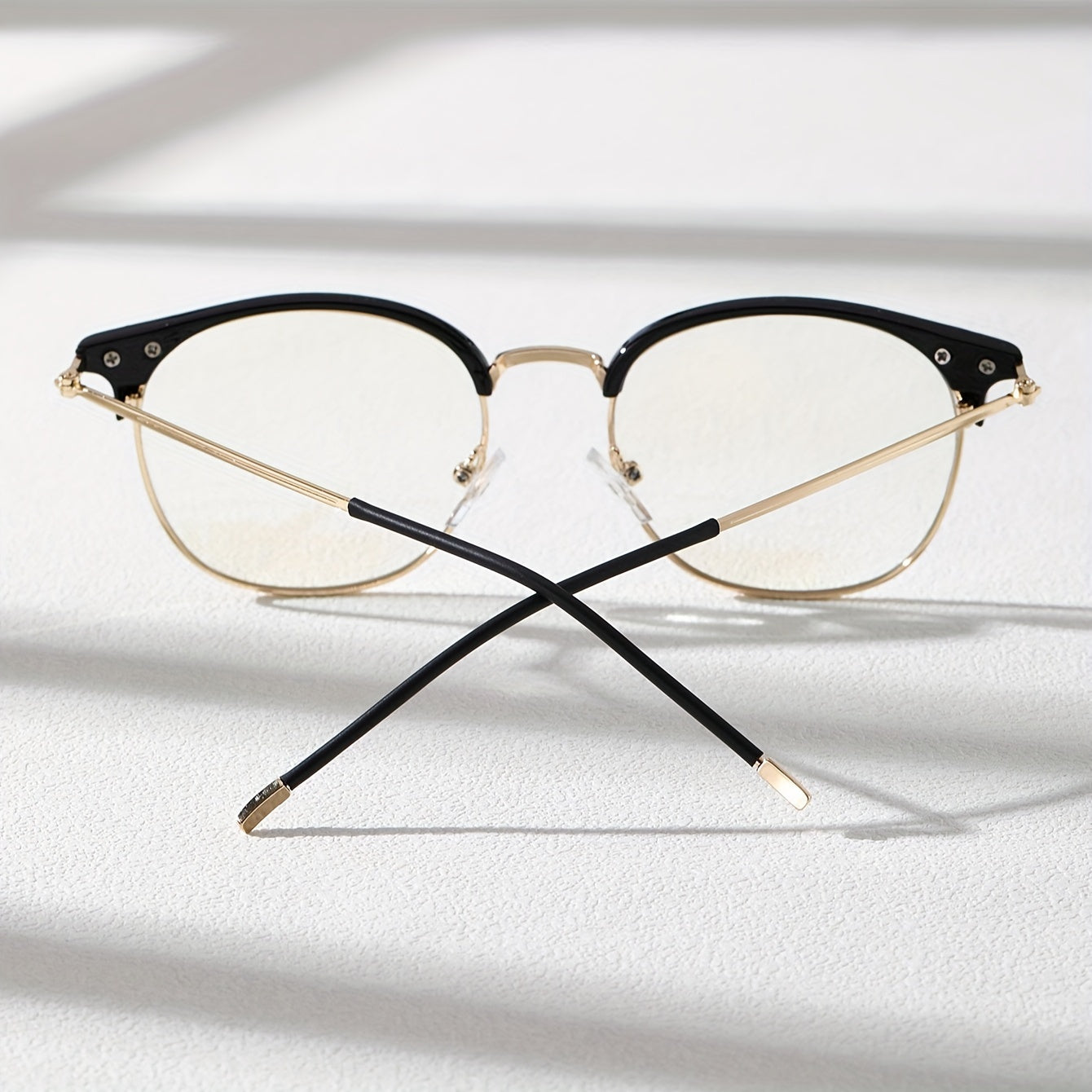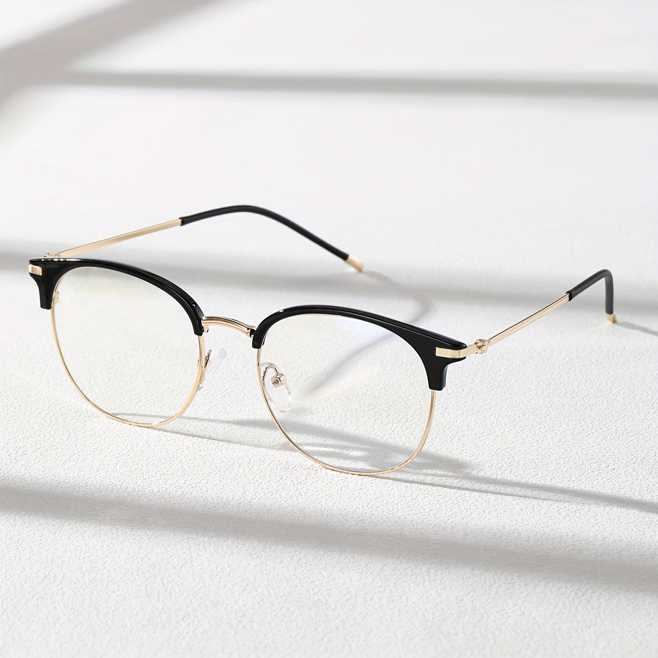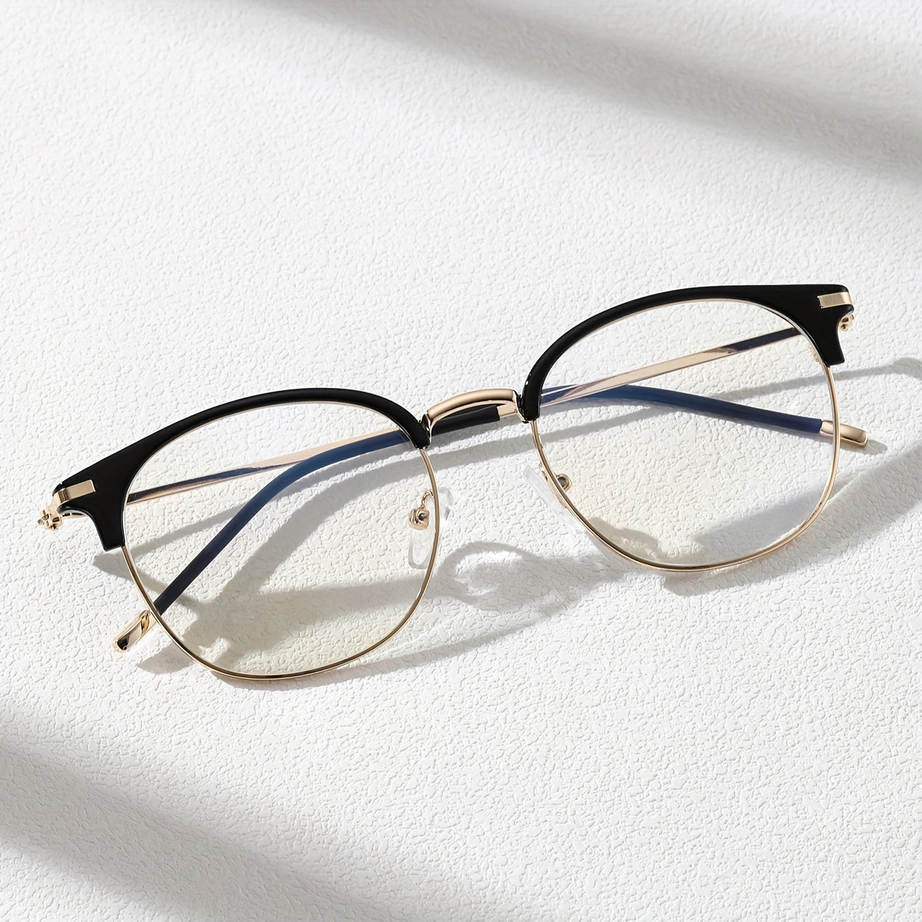 1 Pair, High-Class Elegant Metal Frame Eyebrow Design Plano Glasses, Black And Golden Half-Frame Round Glasses