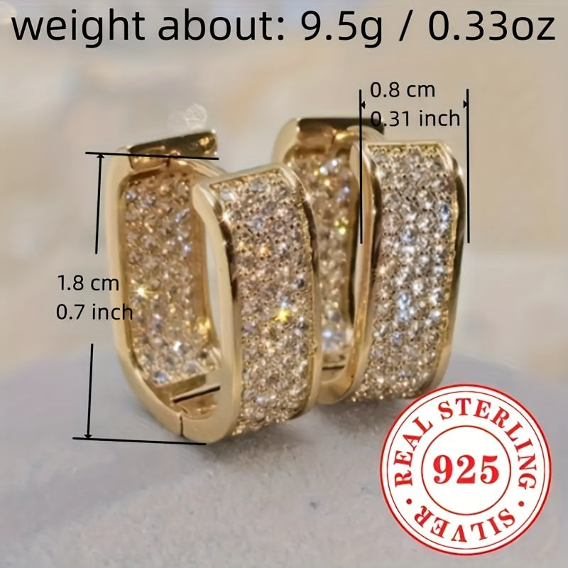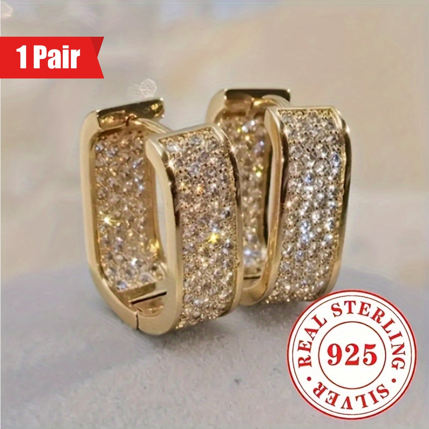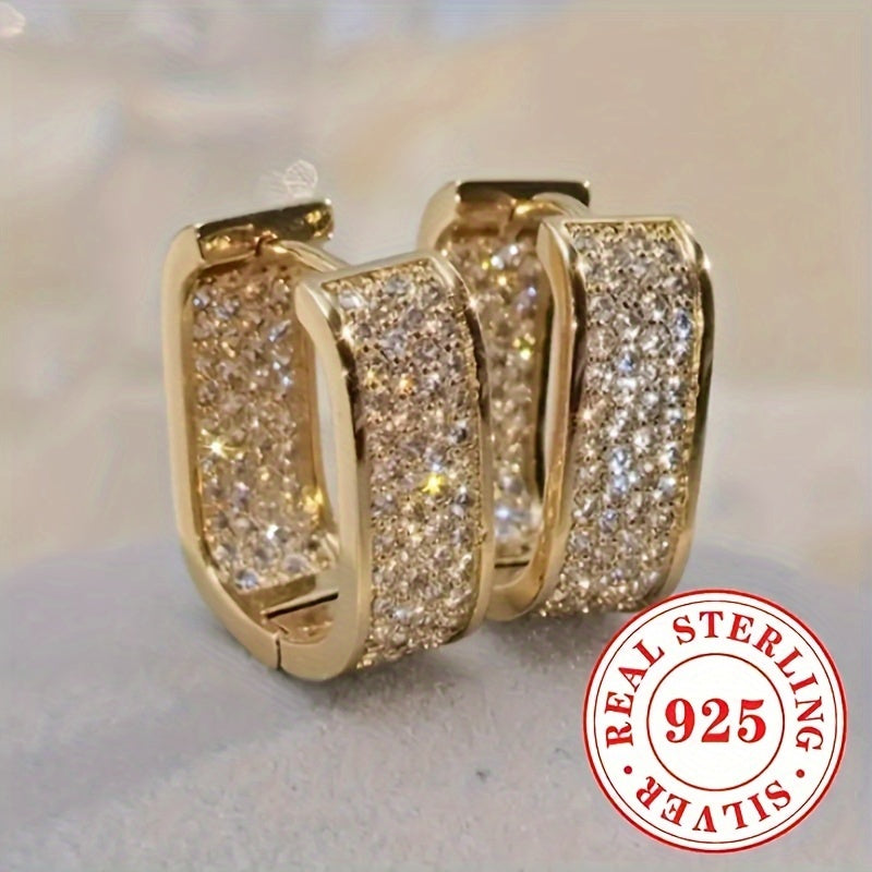 1 Pair Of Luxurious 925 Sterling Silver Ring Earrings With Synthetic Cubic Zirconia April Birthstone, Suitable For Daily And Party Wear, Vacation Style Women's Jewelry