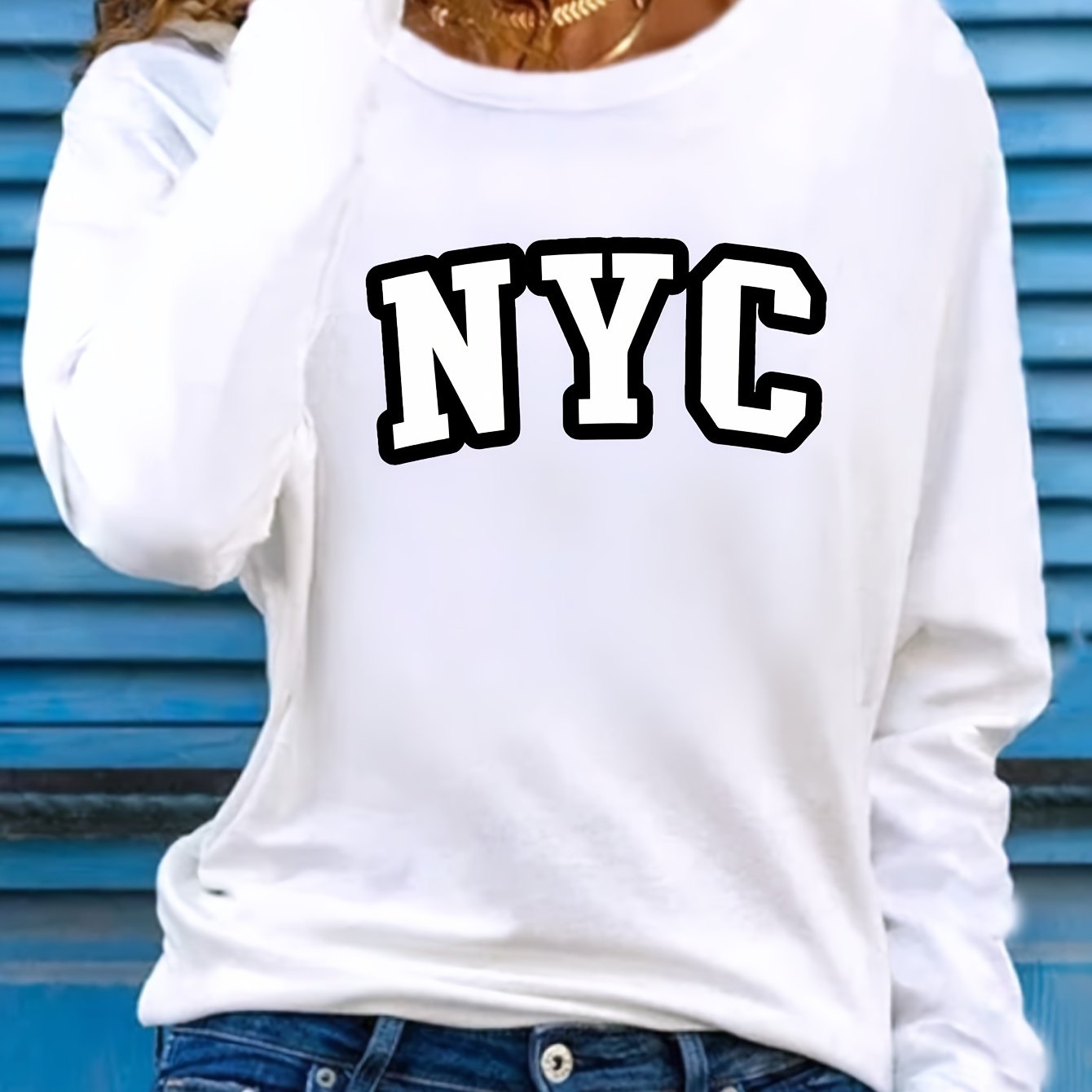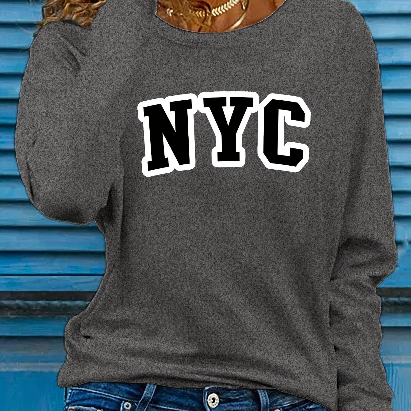 100% Polyester NYC Print Long Sleeve Sweatshirt - Casual Crew Neck Top with Regular Fit for Fall/Winter Season
