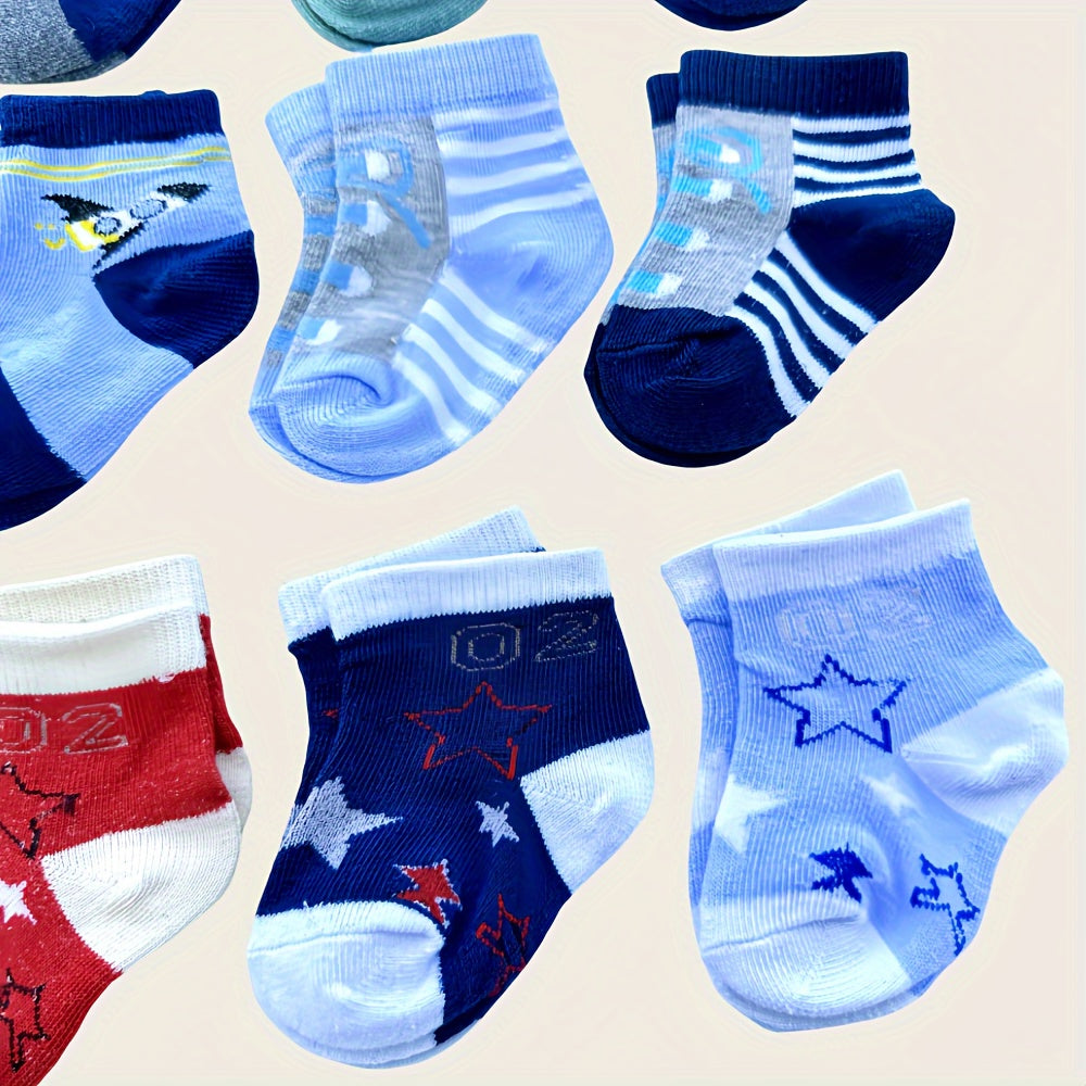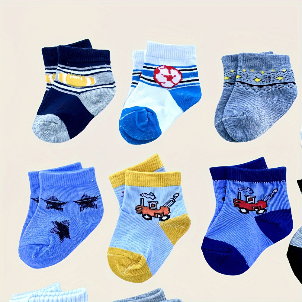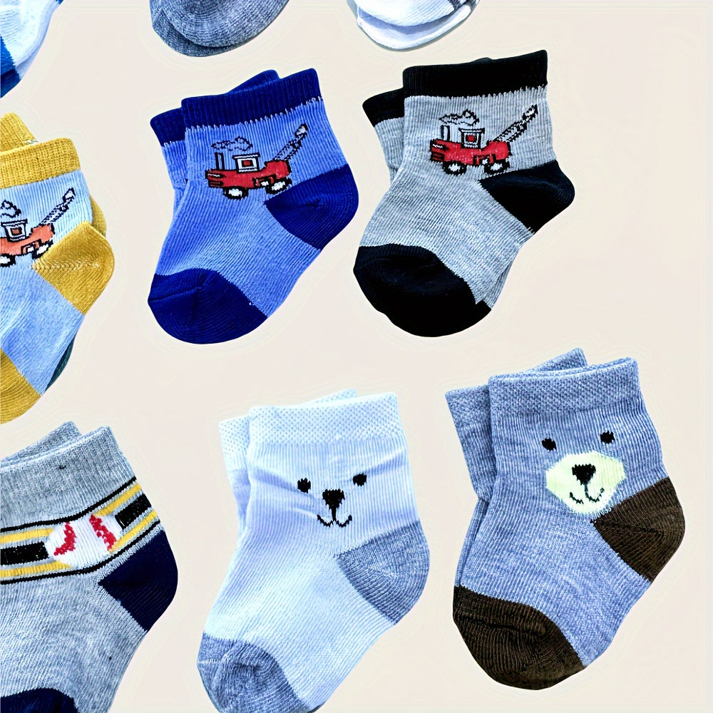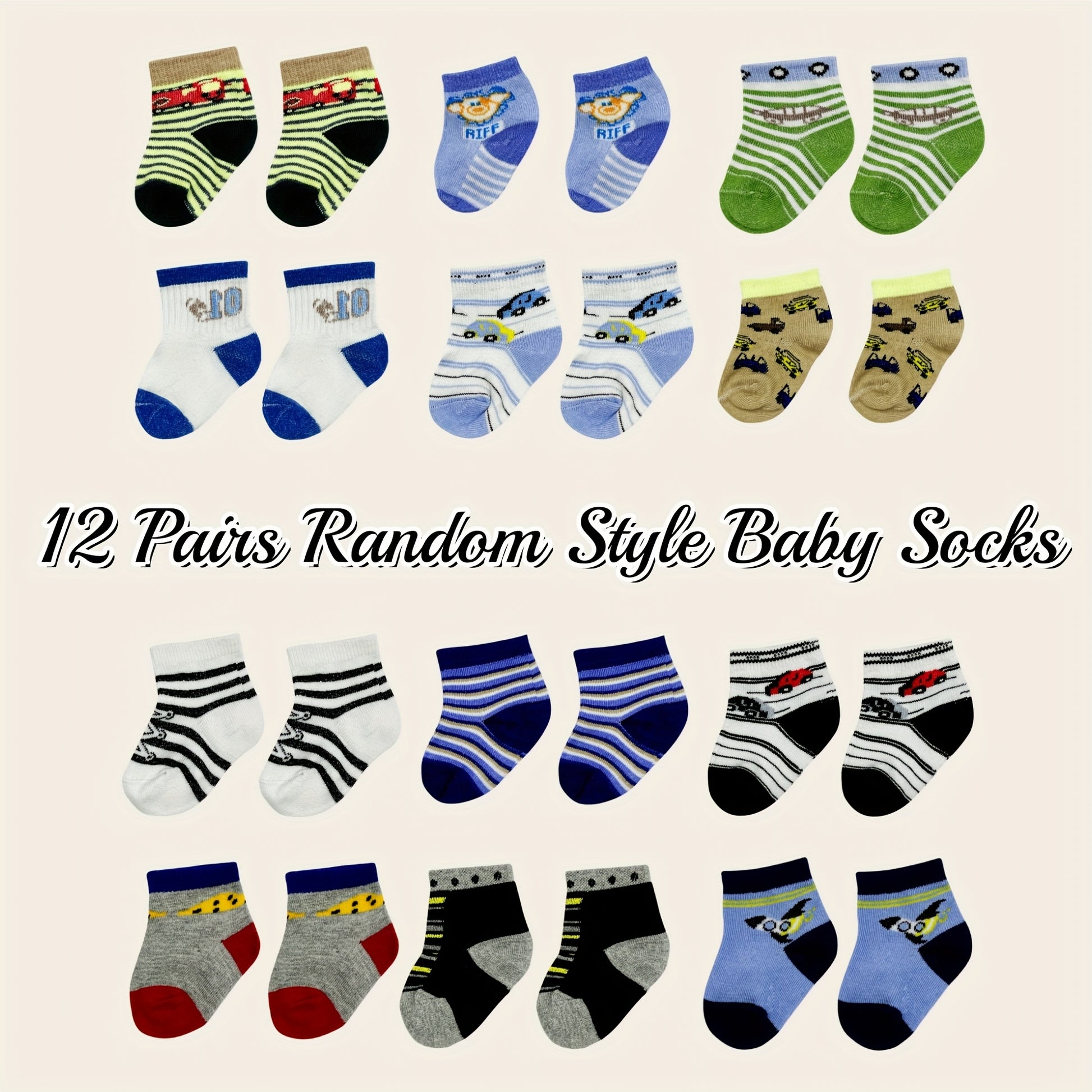 12pcs Cute Cartoon Socks for Youngsters & Youngsters - Soft, Non-Slip, Breathable Polyester Blend - Perfect Gift for Boys 0-1 Year