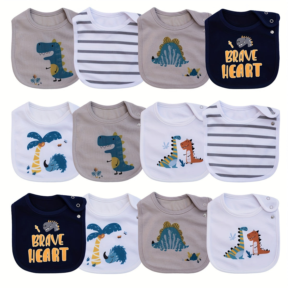12pcs Of 4-layer Muslin Baby Bibs, Absorbent, Breathable, Adjustable Snap Bibs, Perfect For Boys And Girls, Nursing, Feeding, Teething, And As Pet Bandanas