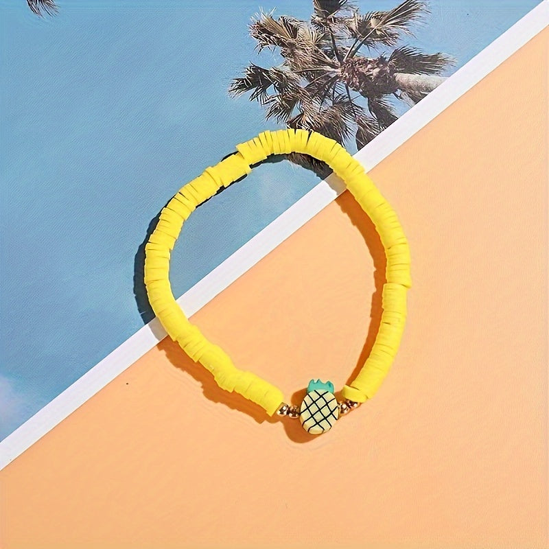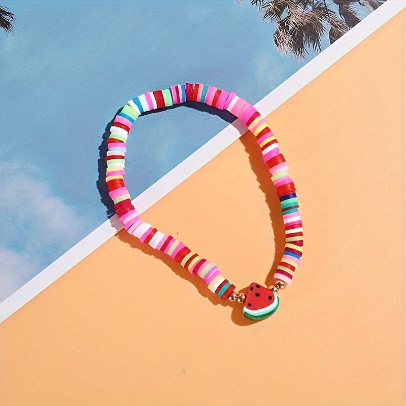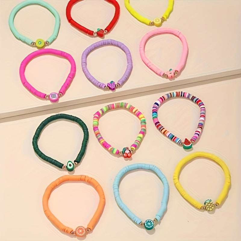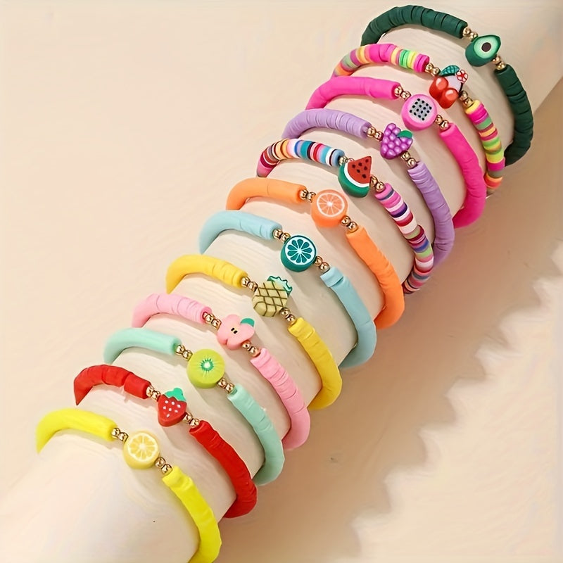 12pcs Polymer Clay Beaded Bracelet In Fruits Shape, Bracelet Set Stackable Hand Jewelry For Decoration