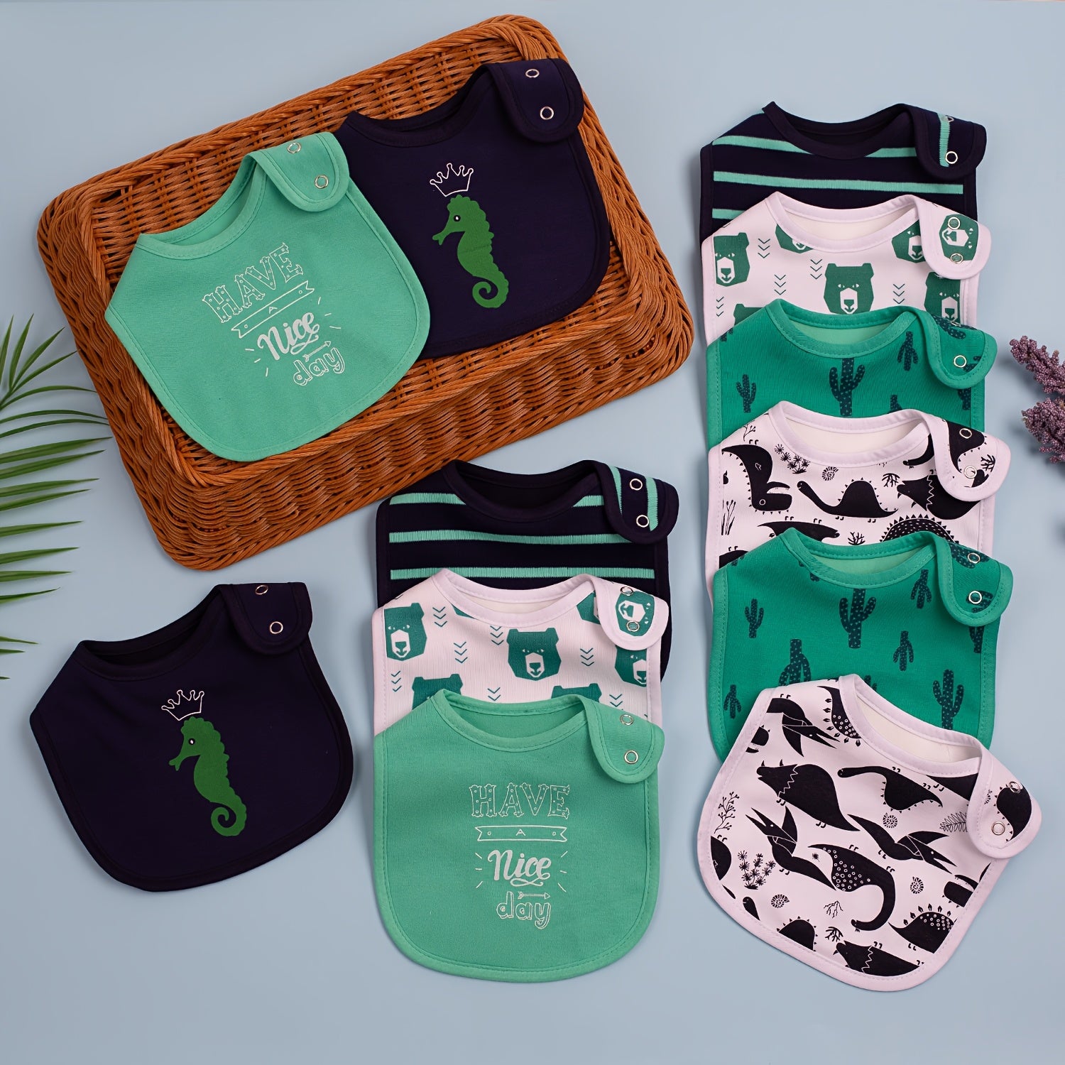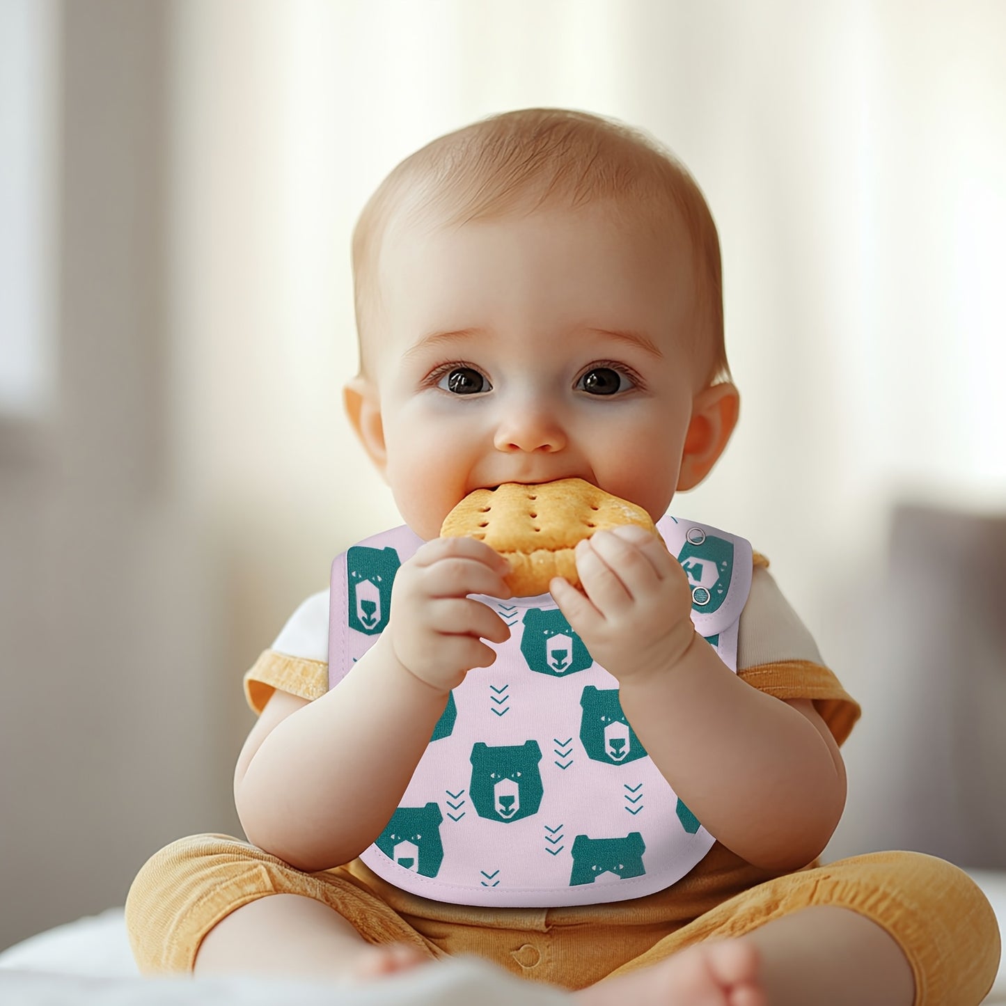 12pcs Unisex Drool Bibs, Waterproof Cotton Feeding Bibs with Adjustable Snaps, Absorbent Teething Bib Set for &, &